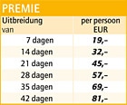 • 7 dagen voor vertrek bij reizen van twee (2) tot zes (6) dagen;