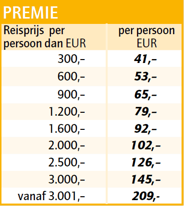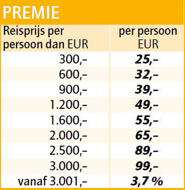 • bij annulering op de vertrekdag of niet verschijnen: 100% van de reissom.
